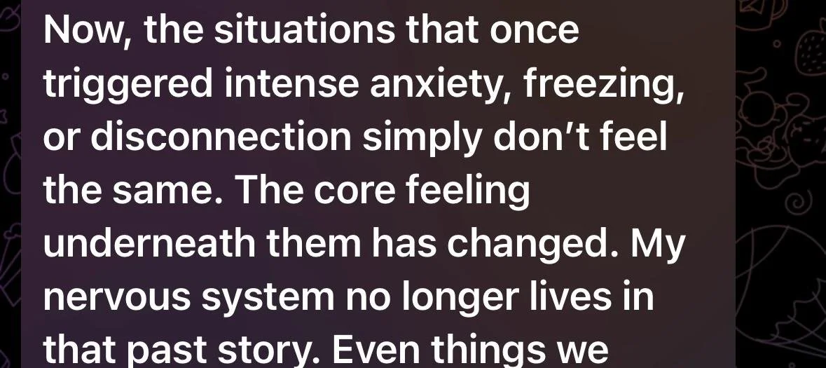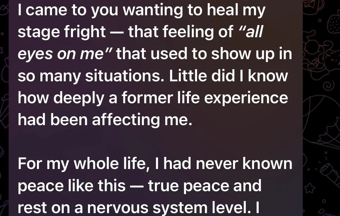 But through years of inner work and training as an Integral Regression Therapist, I discovered my fear of being seen wasn’t a mindset issue — it was a nervous system response. My body didn’t feel safe being visible.
