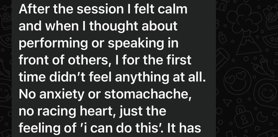 When I started resolving the roots behind that fear, things changed. Speaking became easier. I stopped obsessing over how I was perceived. I could be in front of people without my heart racing or my stomach tightening. Confidence stopped being something I forced — it became a state of being.